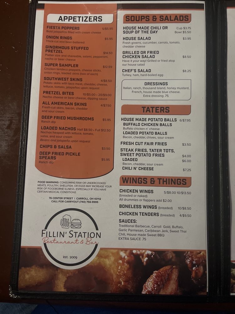 Welcome to Fillin' Station, your go-to destination for delectable American bar fare in Carroll, OH. With a casual, welcoming atmosphere, this women-owned establishment offers a myriad of dining options, including tasty takeout, delivery, and even a drive-thru. Grab a seat in the covered outdoor area and enjoy their vibrant Happy Hour specials, perfect for groups and families alike.